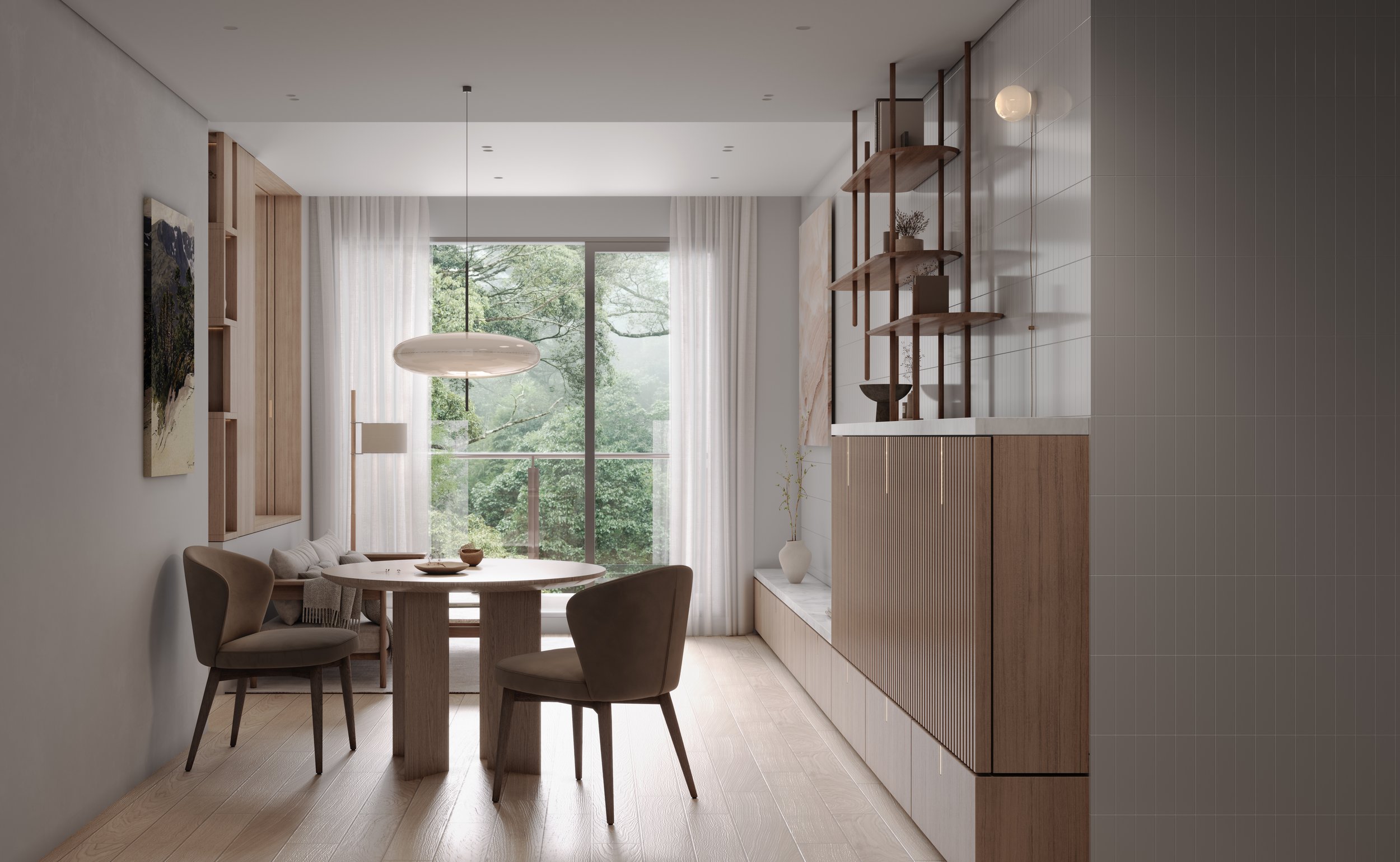 Starting from circulation and daily living functions, the design employs careful material selection, proportional adjustment, and the control of light and shadow to visually expand the interior while enhancing the overall quality of living.