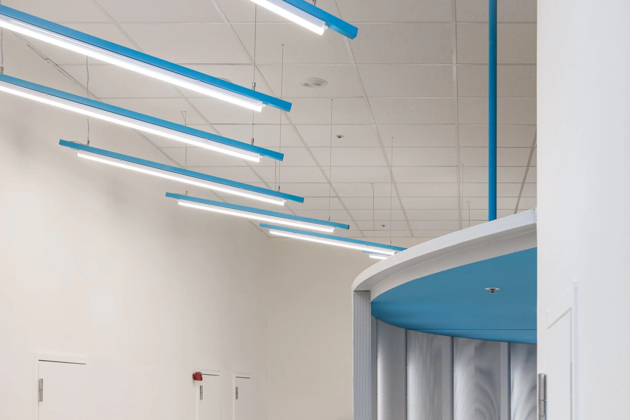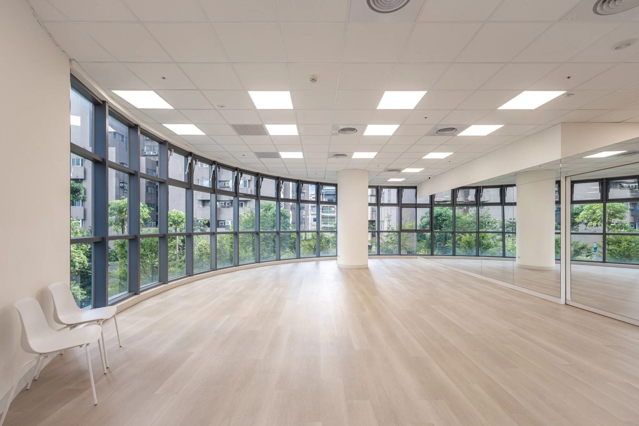 The design strategy extends the architectural language of curves into the interior, allowing activities on the first and second floors to be naturally reflected on the curtain wall façade, becoming part of the building’s expression. The reception desk adopts a curved gesture to welcome visitors, while the second floor is organized into creative classrooms, flexible learning rooms, a dance studio, and communal lounge areas—offering diverse spaces for learning and creation.