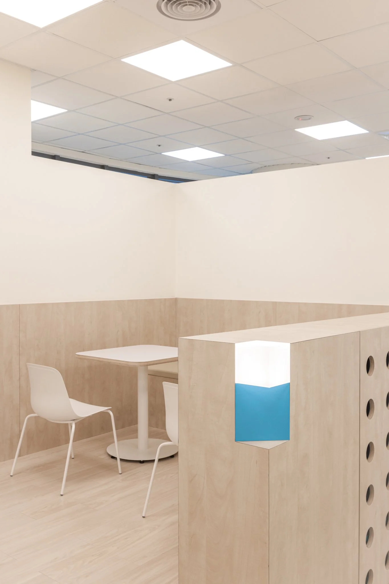 Located within the public space connecting the first and second floors of Zhonghe Anbang Social Housing, this project was developed in collaboration with the National Taiwan University of Arts to establish a Youth Creative Base. Combining arts, caregiving, childcare, and community classrooms, the space creates an integrated hub where interaction and service coexist, providing residents and young people with a platform for communication, learning, and creativity.