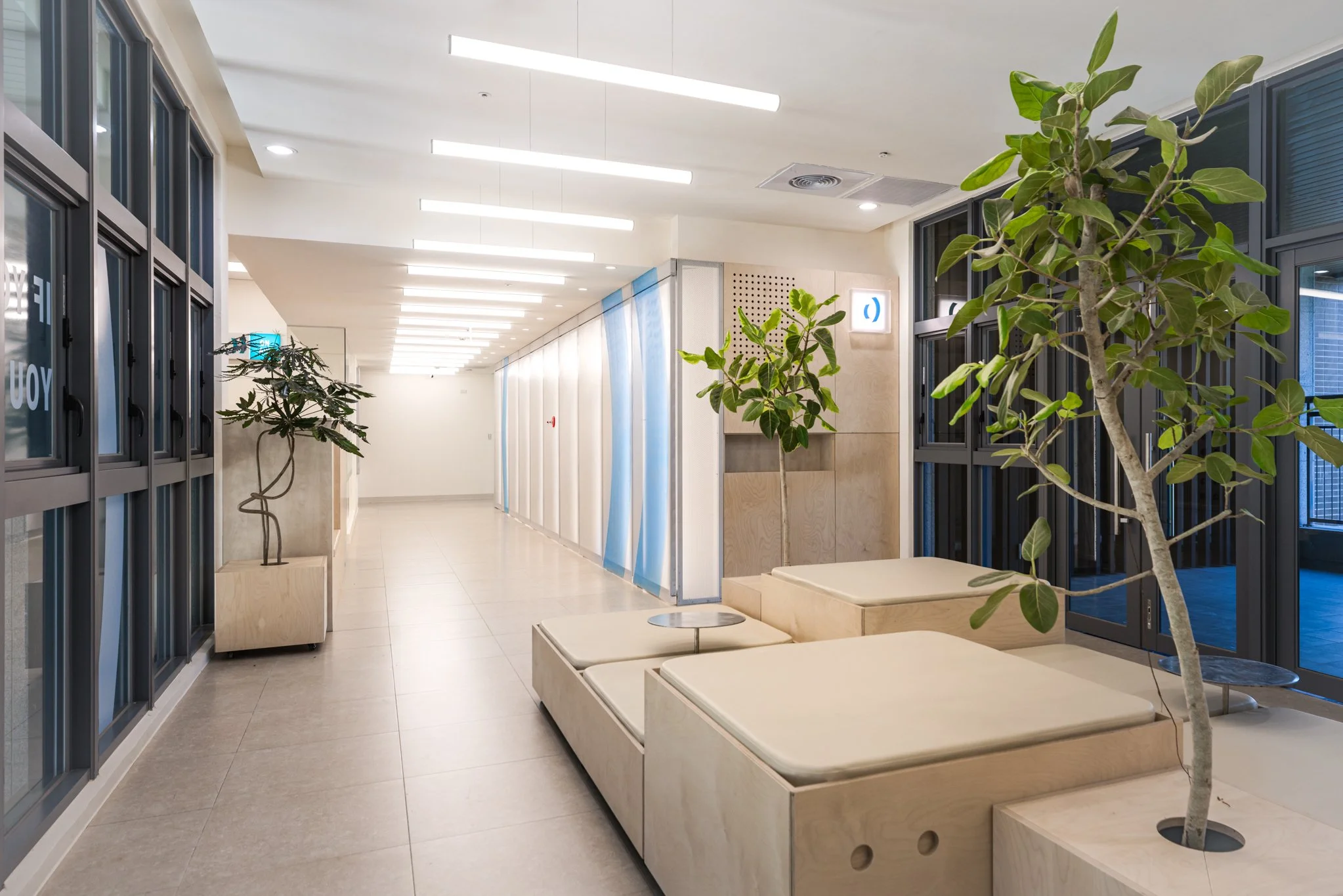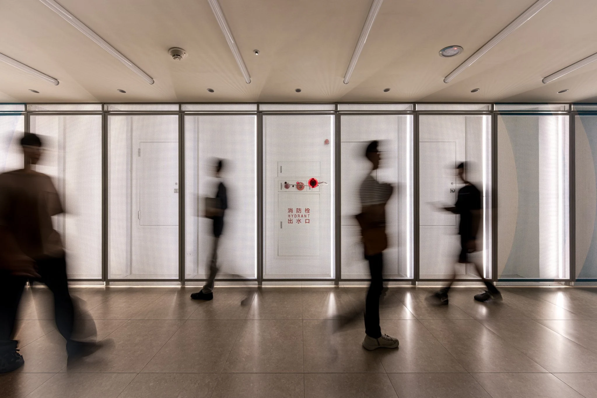 In terms of materiality, wood finishes symbolize the soil and vessel that nurture creativity, while perforated metal panels serve both display and wayfinding functions. Enhanced by lighting effects, these elements create a distinctive visual guide throughout the space.