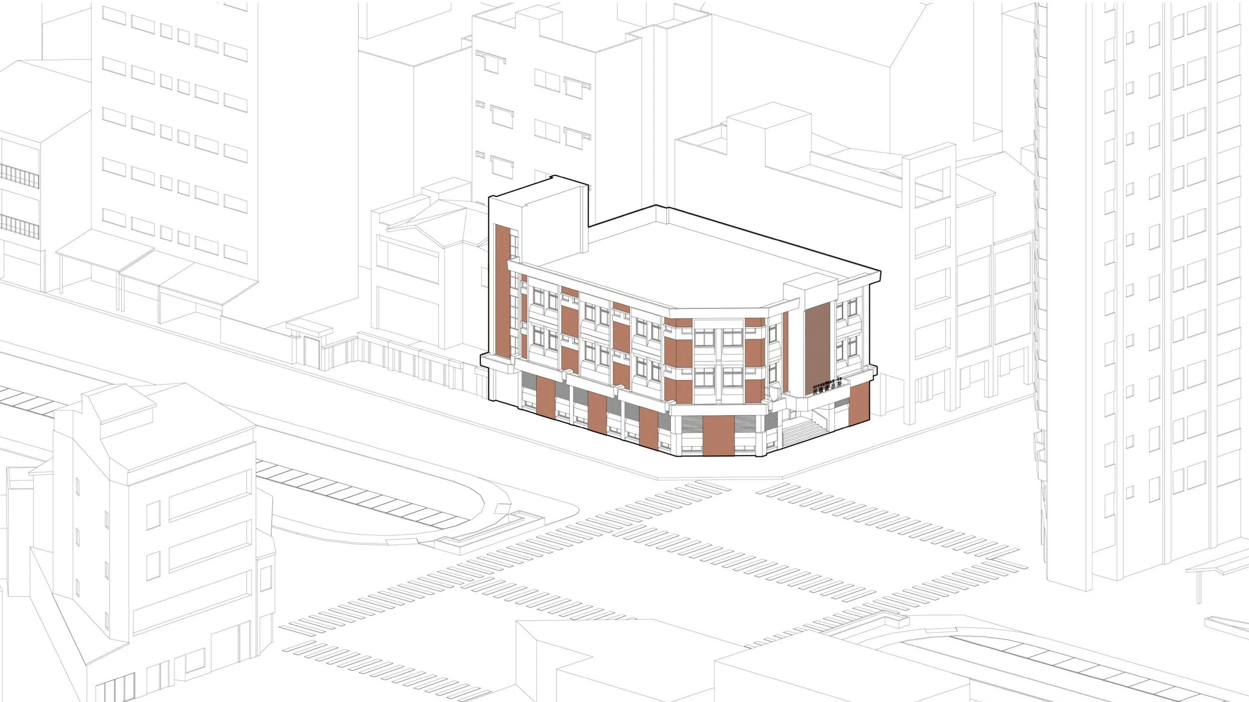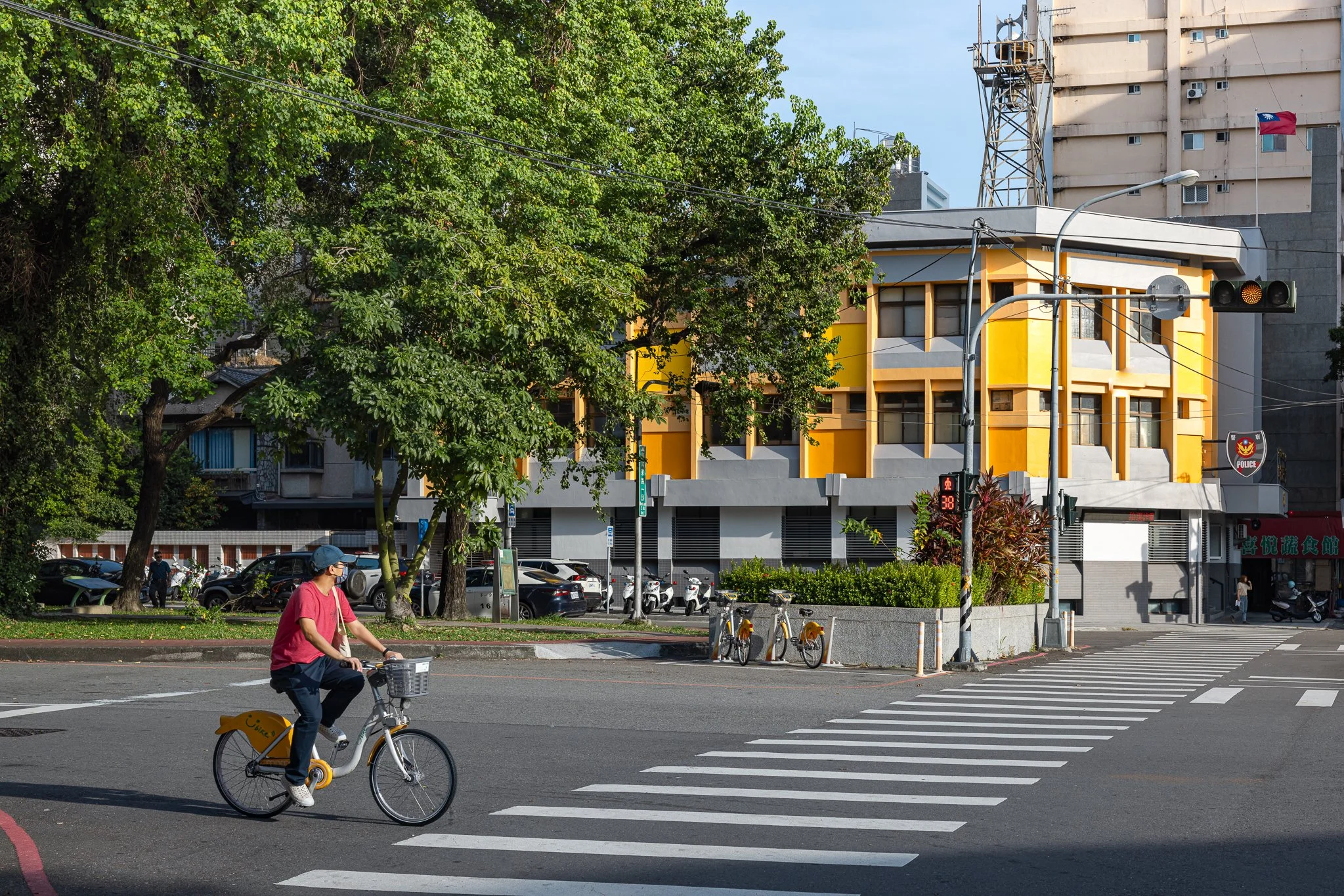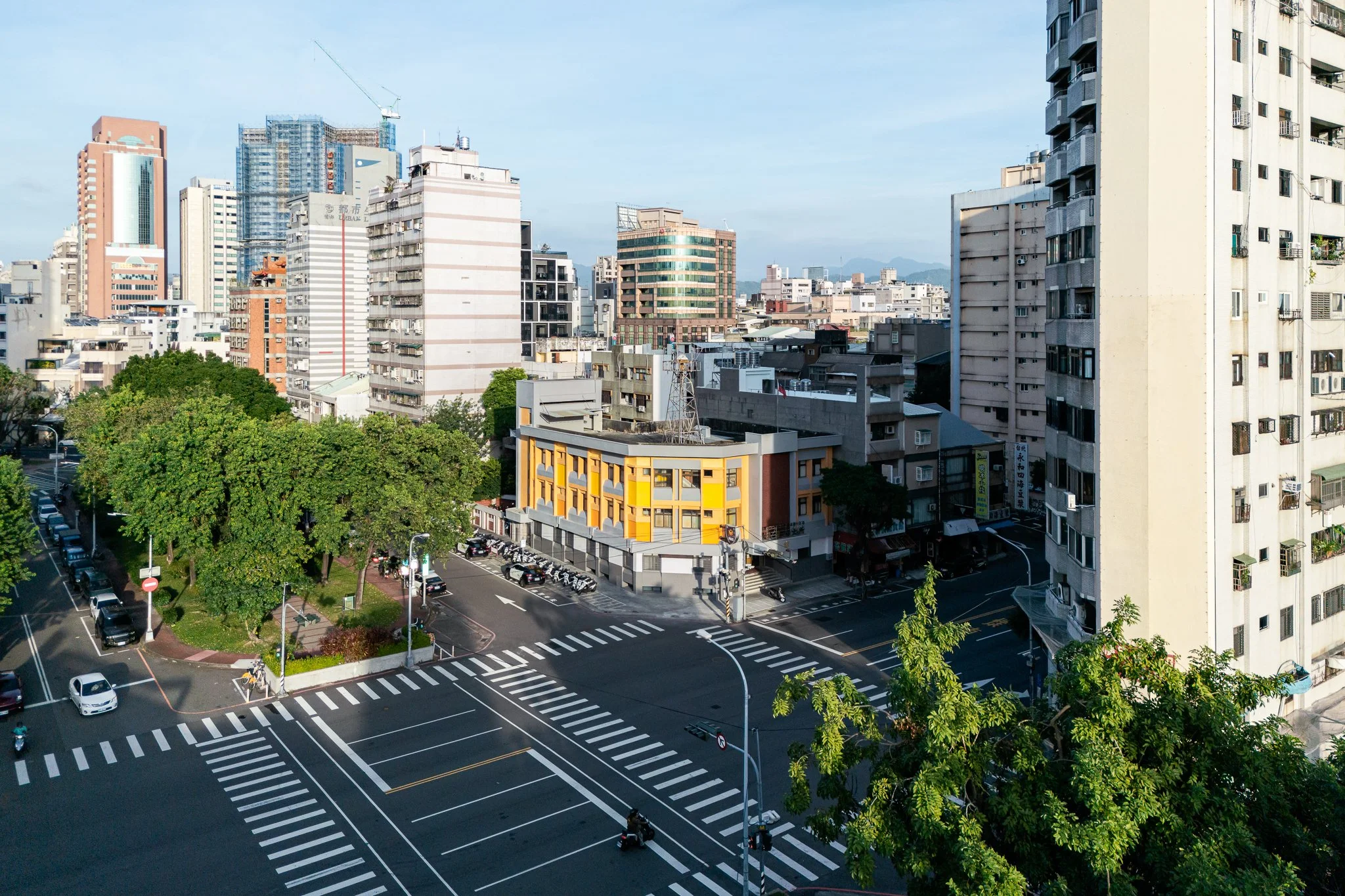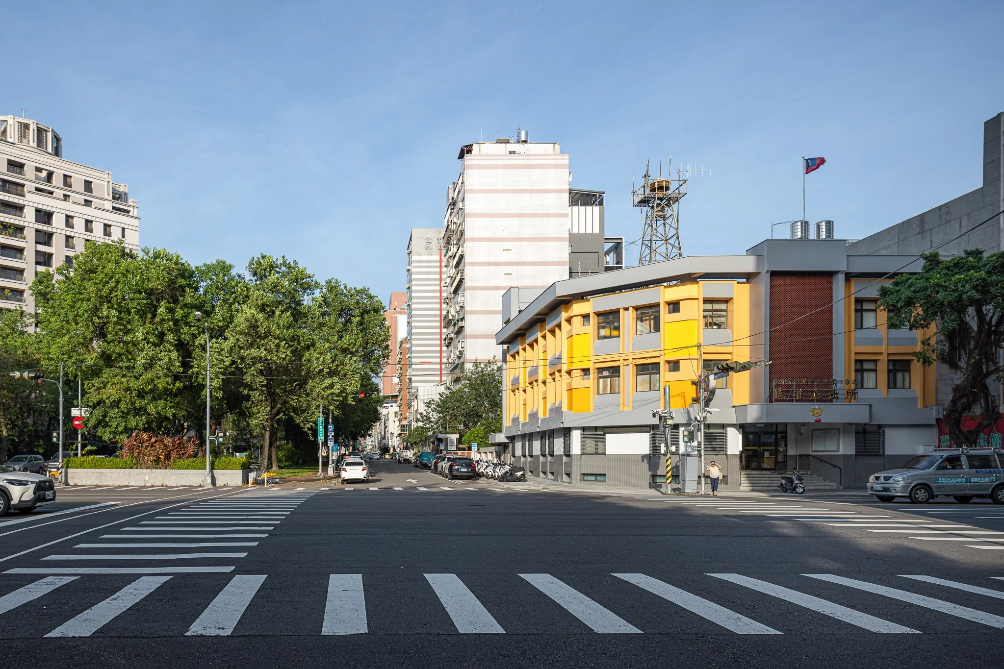 Taichung is a city defined by interconnected green corridors and river systems. Located along the Meichuan Greenway, Minquan Police Station sits within a key pedestrian link between the National Taiwan Museum of Fine Arts and the Taichung University of Education district. Due to aging exterior tiles, this renovation addressed safety concerns while reestablishing the building’s relationship with the surrounding landscape. The façade draws inspiration from the Chinese tallow trees in front of the site—their canopy height and autumnal yellow tones—allowing the building to act as a subtle backdrop to the greenway. Divided by the first-floor canopy, the lower level reorganizes tiles and security grilles into a clear horizontal expression, while the upper level introduces a vertical yellow gradient echoing the tree canopy. A fiberglass mesh overlay system was applied over the existing tiles to shorten construction time and minimize disruption, enabling the building to renew its civic presence while reconnecting with the urban landscape.