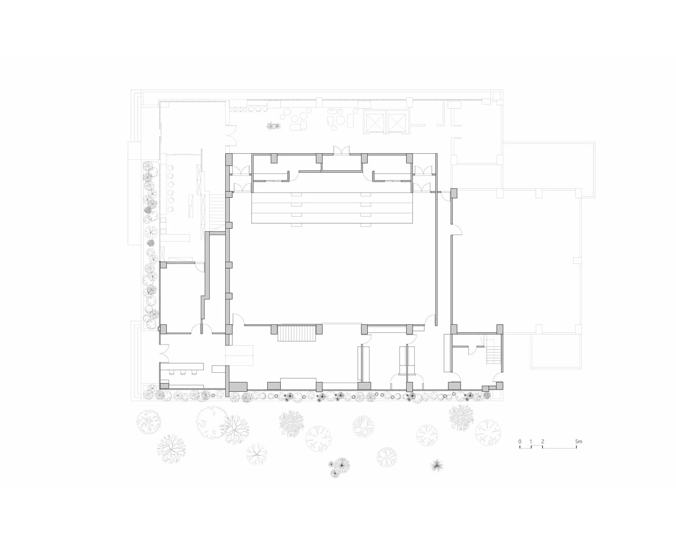 We aimed to create a theater experience that extends beyond the moment audiences enter the hall, allowing it to blend seamlessly into everyday campus life. The original backstage, once hidden deep inside the building, was turned outward to face the campus. With color accents integrated into the window-facing façade, the backstage becomes a “performance showcase.” When actors begin their preparations, the performance has already started—breathing new life into the old building.