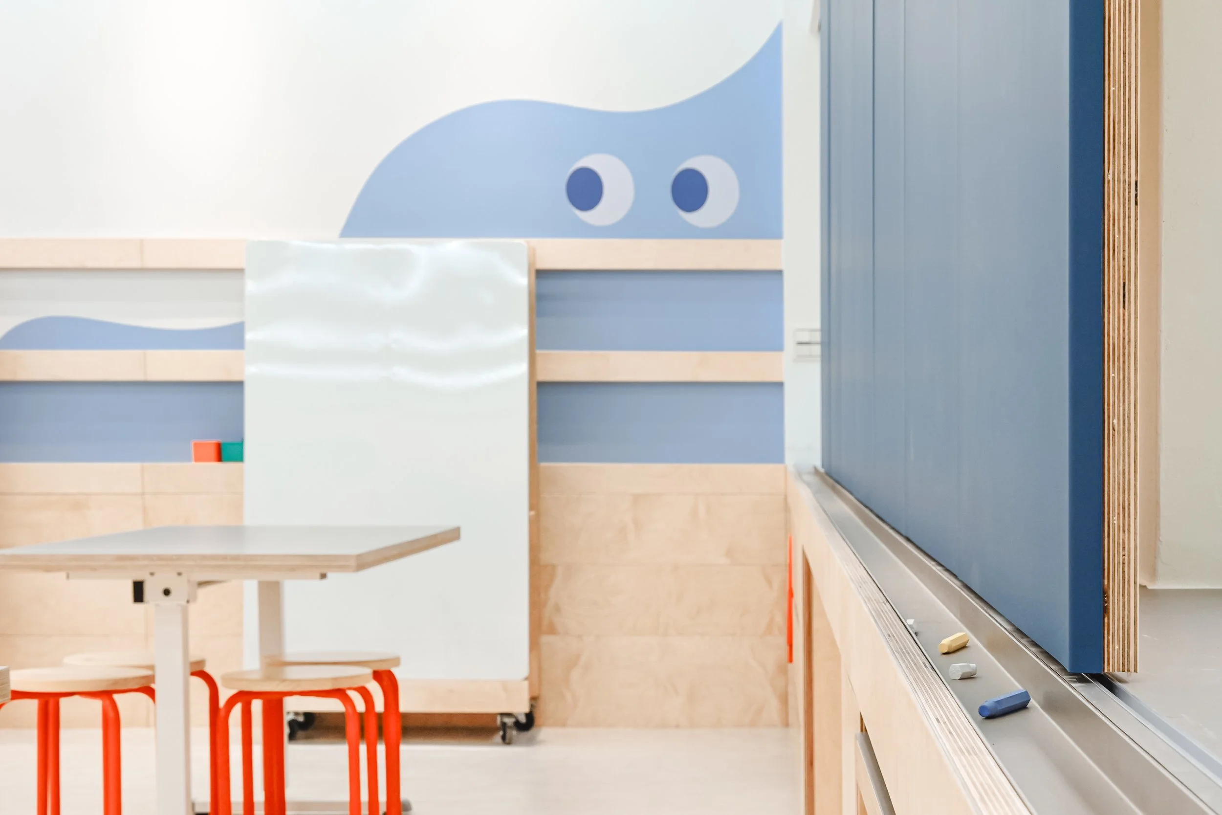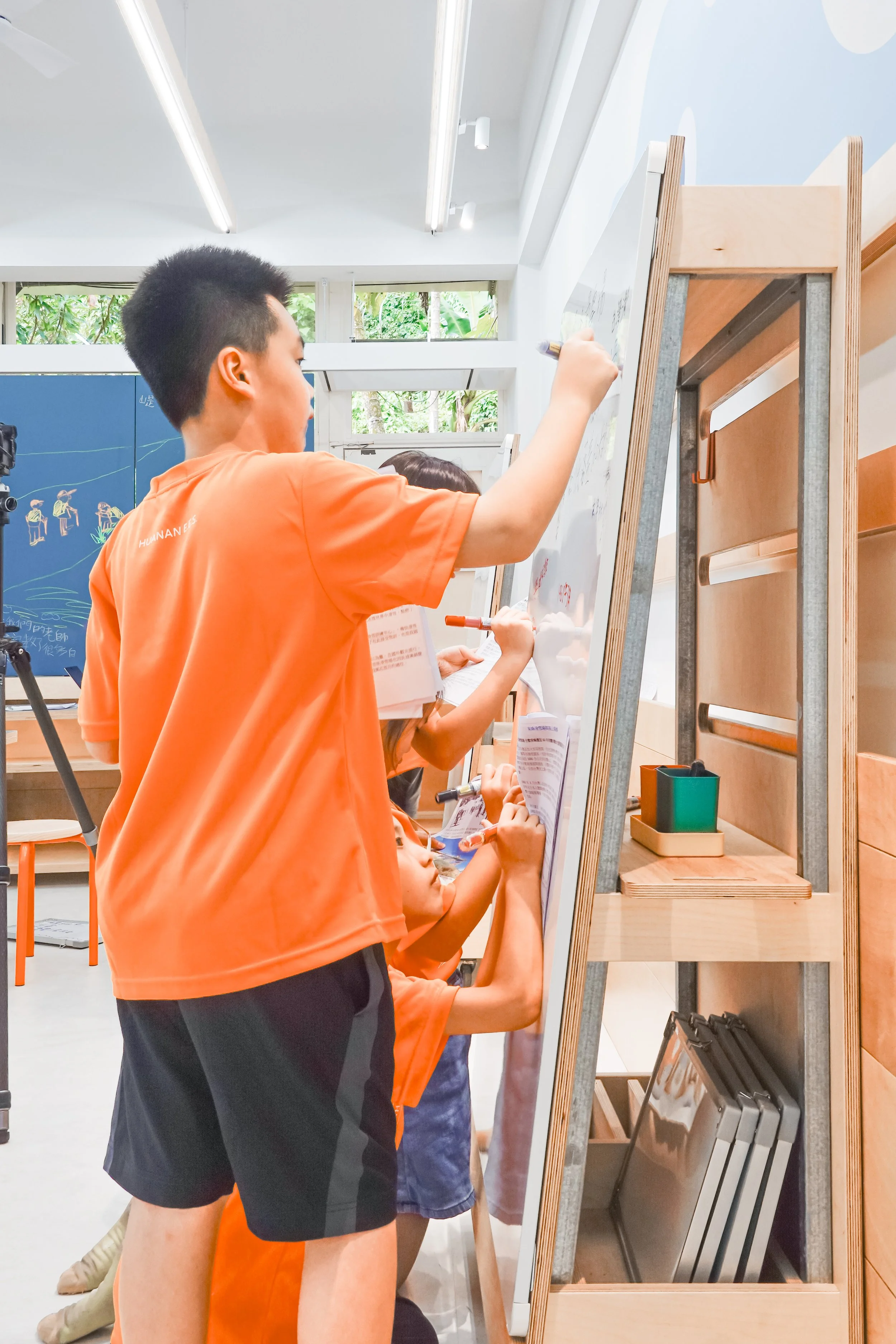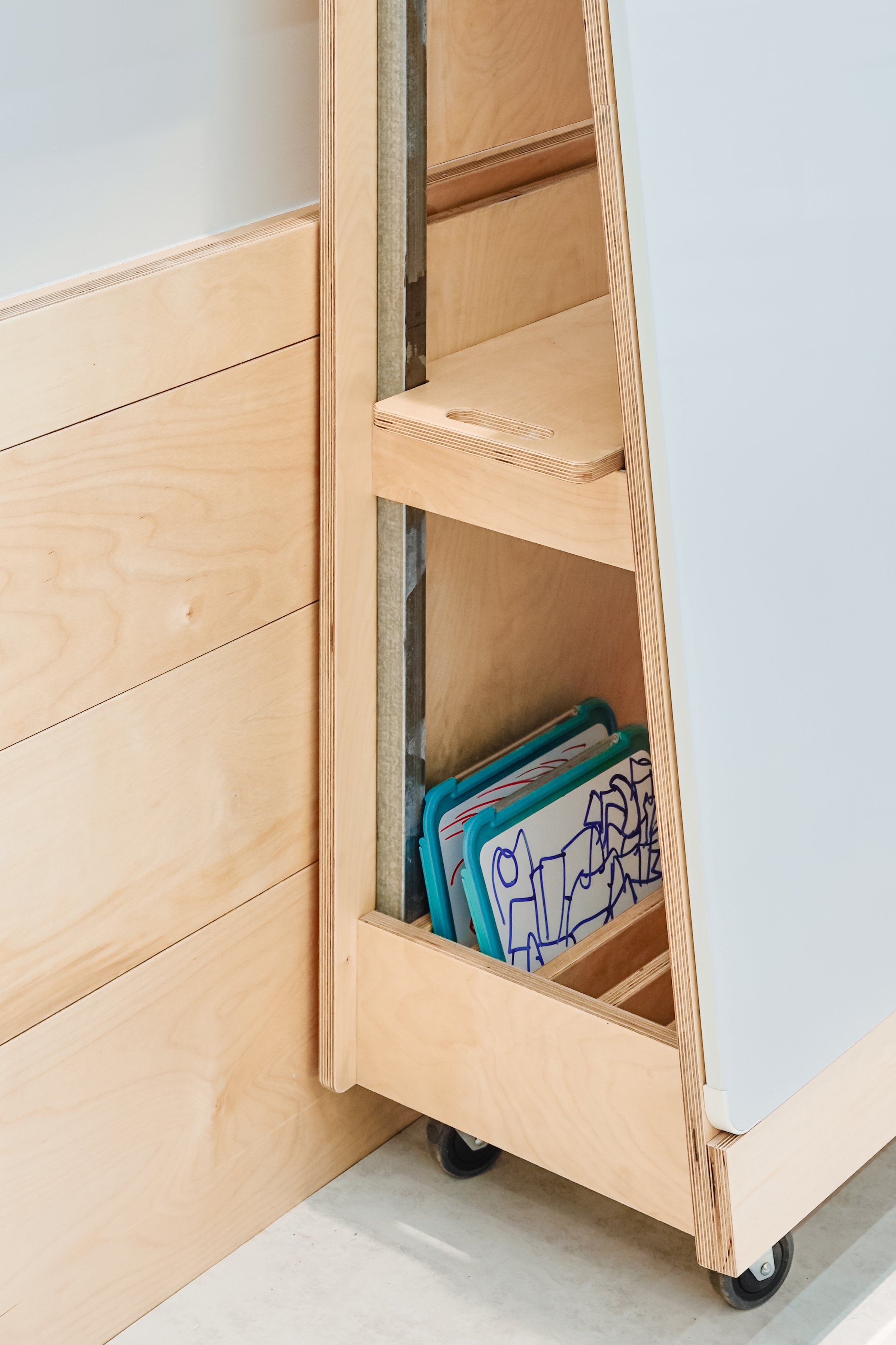 空間規劃中我們依照上述尺度來進行輔助的教具規劃,以小白板、活動白板、長向黑板最後來到走廊,來對社區或其他班級的想法交流,進而走出校園,將從環境而來的課題,經過一系列的探索後重新定義新的想法來回應這個環境。